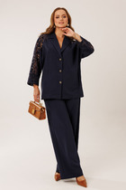 Состав: Блуза- Металл-20%; ПЭ-76%; Спандекс-4%; Брюки- Вискоза-30%; ПА-10%; ПЭ-40%; Шерсть-20%;