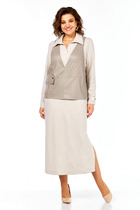 Юбка на притачном поясе с резинкой. Переднее полотнище с наклонными карманами к боковым швам и складками от пояса. Заднее полотнище с потайной молнией в среднем шве и складками от пояса. Юбка на подкладке.