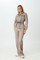 Брюки на поясе с резинкой и наклонными карманами к боковым швам.