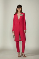 Комплект 2ка, состоящий из жакета и брюк. Жакет на подкладке с объёмными рукавами. Перед выполнен на запах с застежкой на кнопки, под пояс по талии. Широкие брюки-кюлоты свободного оригинального кроя с застёжкой на пуговицы. Без карманов.