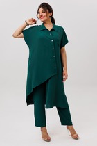 Костюм 2ка, состоящий из кофты и брюк. Кофта в спортивном стиле на молнии. Талия и низ рукавов на резинке. По переду расположены накладные карманы с клапанами. На клапанах люверсы. Жакет дополнен декоративными цепочками. Свободные брюки прямого силуэта, талия на резинке. В боковых швах расположены карманы. На правой брючине расположен боковой накладной карман с клапаном. Длина бомбера по спинке 63-65 см .Длина брюк по боковому 114-115 см .