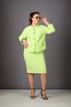 Комплект 2ка состоит из рубашки и брюк. Брюки из джинсовой ткани свободного объёма от бедра с застёжкой на молнию и пуговицу. По переду и сзади расположены карманы. Рубашка женская большого объема, прямого силуэта. На детали спинки расположена двойная кокетка, переходящая на деталь полочки. Под кокеткой на спинке встречная складка. Воротник рубашечный отложной на стойке. Застежка планка центральная на прорезные петли и пуговицы. Линия плеча спущенная, рукав рубашечный, длинный. В нижней части рукава заложены складки, заканчивается манжетой с двумя прорезными петлями и пуговицами. Низ блузки разноуровневый: спереди короче, сзади длиннее.