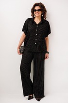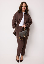 Комплект, состоящий из куртки и платья. Платье прямого силуэта , свободного объема, со спущенной линией плеча. По бокам платья расположены карманы.По низу переда и спинки разрезы. Также, низ платья по бокам можно регулировать по длине за счет шнуровки и регуляторов. На перед платья настрочены молнии, на которые застегивается съемная куртка. Куртка длинной до талии .По переду расположены клапаны, воротник-стойка. Куртка съемная, ее можно надеть отдельно от платья. Рост модели 170, размер 48.