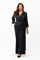 Элегантный комплект, состоящий из блузы и юбки, выполненных из мягкой костюмной ткани. Блуза полуприталенного силуэта со спущенным рукавом и отложным воротником. По спинке в средний шов вставлена молния. Юбка классического кроя, заднее полотнище со средним швом, застегивается на потайную молнию. Шов переходит к низу в шлицу. Длина блузы от плечевого шва 56 см. Длина рукава 51 см. Длина юбки 47 см