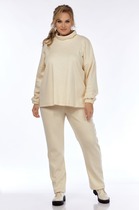 Стильный комплект из трикотажной футболки и брюк. Футболка свободного кроя с коротким цельнокроеным рукавом. Выполнена из трикотажного полотна в стильную полоску. Для придания объема спереди по низу футболка дополнена скрытой кулиской на шнурке. Брюки свободного прямого кроя со слегка зауженным низом. Притачной пояс дополнен эластичной тесьмой. Застежка гульфик на молнию и пришивную пуговицу. По бокам расположены удобные карманы. Длина футболки от плечевого шва спереди 60см. Длина по спинке 70см. Длина рукава 15см. Длина брюк по боковому шву 92 см.