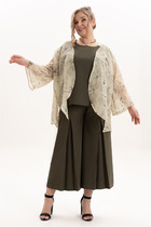Костюм молодежный состоит из футболки и брюк 7/8. Брюки с боковыми карманами и разрезами по низу. Футболка комбинированная со спущенной линией плеча.