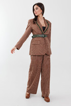 Женский актуальный, базовый комплект для повседневной носки, состоящий из двух предметов: джемпера и юбки- макси. Джемпер свободного кроя из приятного на ощупь трикотажа, с круглой горловиной и рукавом 7/8, по переду в качестве декора модный принт из двух разных текстур( гладкой и с глиттером). Длинная юбка из ткани плательного - костюмного ассортимента, которая хорошо драпируется. Юбка на запах с отлитным поясом, из-под пояса складки, в боковых швах функциональные карманы. Оба изделия данного комплекта отлично сочетаются между собой и смело могут комбинироваться с другими вещами вашего гардероба. Длина джемпера по спинке 67 см( +-1см), длина рукава от горловин