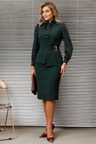Костюм двухпредметный состоит из жакета и брюк. Элегантный дизайн костюма с брюками подарит комфорт и уверенность в себе. Жакет с центральной застежкой на 2 петли и пуговицы с прорезными функциональными карманами по переду. Рукав втачной двухшовный со шлицей декорированной пуговицами. Брюки прямые от линии калена, застежкой в боковом шве на потайную молнию. В комплект входит пояс с пряжкой. Костюм двойка отлично подойдет для офиса, для праздника, на каждый день для прогулок. Длина жакета 69 см, длина брюк 110 см