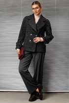 Комплект женский 2-х предметный состоящий из жакета и юбки выполненного из замшевой ткани. Жакет прямого с накладными карманами с клапаном. Спинка со средним швом. Рубашечный воротник. Спущена линия плеча. Рукав втачной одношовный по низу пата  с 2-мя  пуговицами. Застежка центральная на 5 пуговицы и петли. Жакет без подкладки.Юбка  А-силуэта  на обтачке. Застежка сзади  на потайную тесьму-молнию. Юбка на подкладке.