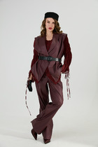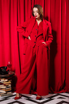 Элегантный женский костюм, состоящий из жакета и прямых брюк, выполнен из костюмной однотонной ткани. Жакет однобортный, на петлях и пуговицах, с английским воротником и клапанами по бокам. Рукав втачной, длина — полная. Посадка свободная, что обеспечивает комфорт и стильный силуэт. Брюки прямого кроя, на частичной резинке по поясу для удобной посадки и идеального прилегания. Костюм на подкладке, лёгкий, приятный к телу и подходит как для повседневной носки, так и для офиса или торжественного выхода.