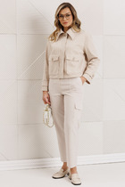 Брюки с накладными карманами в верхней части и на середине бедра.На притачном поясе со шлёвками, сзади - резинка. Застёжка на молнию. Этот костюм создан для тех, кто ценит легкость и не ограничивает себя рамками. Идеальный спутник для города, путешествий и встреч.
