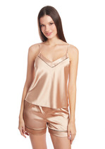 Костюм женский из трикотажного полотна «кулирка» в комбинации двух видов полотен: гладкокрашенного и с набивным рисунком, состоящий из футболки и брюк. Футболка классического покроя, с короткими втачными рукавами и горловиной V- образной формы, обработанной втачной планкой из основного материала. На полочке выполнен принт в