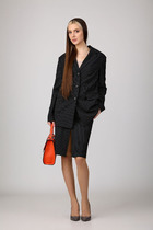 Костюм двухпредметный: состоит из блузы и брюк. Блуза свободного кроя с округлым вырезом горловины. Центральная застёжка на петли и пуговицы. Рукав втачной одношовный спущенный с притачной манжетой на петлю и пуговицу. Спинка с отрезной кокеткой, нижняя часть спинки декорирована плиссированным шифоном. Низ изделия фигурный. Боковые швы с разрезами. Брюки свободного кроя, верхний срез представлен широкой резинкой, с карманами.