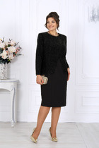 Костюм двухпредметный: состоит из жакета и брюк. Жакет прямого силуэта, воротник пиджачного типа, рукав одношовный, втачной с незначительно спущенной линией плеча, длинный, с притачной манжетой, декорированной разрезом. По линии ткани настрачная кулиса с завязками из основной ткани. Застежка центрально-бортовая. Линия низа верхней части фигурная ассиметричная. Брюки свободного кроя, верхний срез представлен широкой резинкой, с карманами.