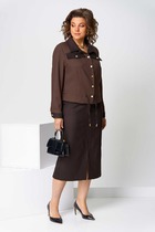 Костюм двухпредметный: состоит из жилета и брюк. Жилет однобортный прямого силуэта с застежкой на петлю и пуговицу. Воротник стояче-отложной с отрезной стойкой с лацканами.Изделие с отрезным бочком. Перед с талиевыми вытачками, с прорезными карманами в рамку с клапанами. Край борта со скруглением по низу. Спинка со средним швом, в котором обработана шлица. Изделие на подкладке.Элегантные брюки прямого кроя с боковыми карманами с отрезным бочком. Застежка на молнию и пуговицу. По переду - складки. Задние половинки с талиевыми вытачками и прорезными карманами с листочкой. Верхний срез обработан притачным поясом, по спинке собран на резинку. Низ обработан швом в подгибку.