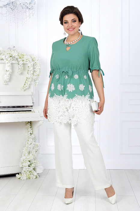 Представляем вашему вниманию нарядный летний костюм, созданный специально для женщин больших размеров. Изготовленный из натуральной хлопковой ткани, этот костюм объединяет стиль и комфорт, предоставляя возможность подчеркнуть свою утонченность в любой обстановке. Блузка с кулиской и свободные брюки обеспечивают невероятное ощущение свободы и легкости, что делает этот костюм идеальным выбором для летнего сезона. Натуральная хлопковая ткань обеспечивает дышащий эффект, поддерживая комфорт в теплую погоду.