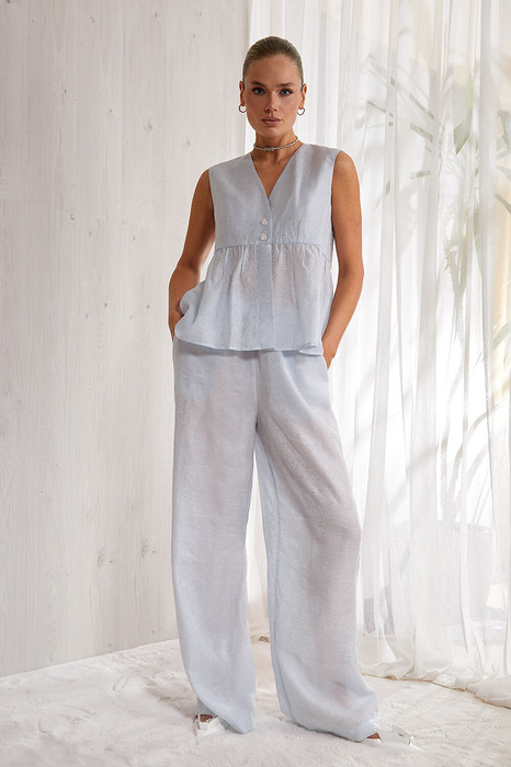 Комплект из тонкого фактурного тенсела (вискоза), состоит из брюк и блузы.