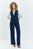 Классический женский брючный костюм - это комплект, состоящий из брюк и пиджака. Он идеально подходит для делового и офисного гардероба, но также может быть использован и для повседневной носки или торжественного события. Брючный костюм женский идеально сочетается как с туфлями, так и с кроссовками. Такая стильная вещь незаменима в повседневном базовом гардеробе современной модницы. Удлиненный жакет без подкладки с лацканами и воротником полуприталенного кроя имеет традиционную застежку на две пуговицы. На полочке обработаны функциональные прорезные карманы с листочкой. Брюки прямые, слегка зауженные книзу. В боковом шве выполнен карман-хулиган. На передней и задней половинке – вытачки. Верхний срез обработан притачным поясом, а в области боковых швов собран на эластичную тесьму. Модель с гульфиком и застежкой на пуговицу и тесьму-молнию. Посадка высокая. Оригинальный современный костюм подарит комфорт женщинам и девушкам всех возрастов.