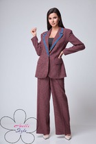 Комплект трехпрехпредметный, состоит из блузы, топа (бандо) и брюк. Выполнен из кружевного полотна.