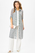 Состав: Топ- Вискоза-20%; ПЭ-77%; Эластан-3%; Юбка- Вискоза-33%; ПЭ-67%; Жакет- Вискоза-28%; ПЭ-68%; ПУ-4%;