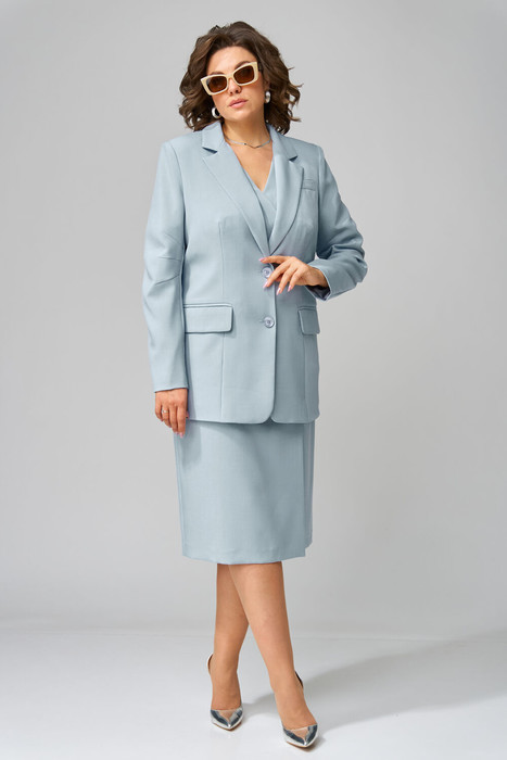 Комплект женский состоящий из жакета и платья, выполнен из однотонной костюмно-плательной ткани.