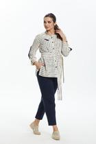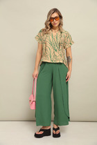 Блуза полуприлегающего силуэта, с втачным рукавом и нагрудной вытачкой из бокового шва. Низ блузы фигурный. Горловина округлой формы, окантована основной тканью.