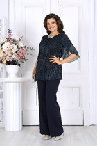 Стильный лаконичный брючный костюм. Жакет с застежкой на одну пуговицу. Жакет полуприлегающего силуэта, с V-образным вырезом горловины. По переду и по спинки имеются вытачки и рельефы, которые обеспечивают отличную посадку изделия по фигуре. Рукава втачные, длиной 3/4. Брюки классические на поясе, укороченые, с карманами по переду. Отличный вариант как для деловых встреч, так и для торжественных мероприятий.