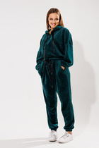 Длина жакета по спинке около 66 см в размерах 40-46 и около 69 см в размерах 48-52, длина рукавов около 61 см. Длина брюк по боковому шву с поясом около 97 в размерах 40-46 и около 98,5 см в размерах 48-52, длина по внутреннему шву около 70 см.