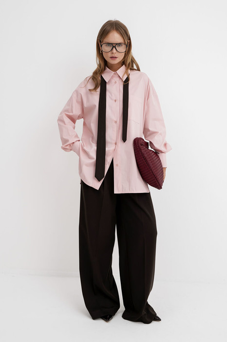 Комплект-дво йка из хлопковый оверсайз рубашки с галстуком и брюк-палаццо со складками.