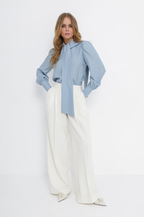 Комплект-двойка из блузы с воротником-бантом и брюк-палаццо.