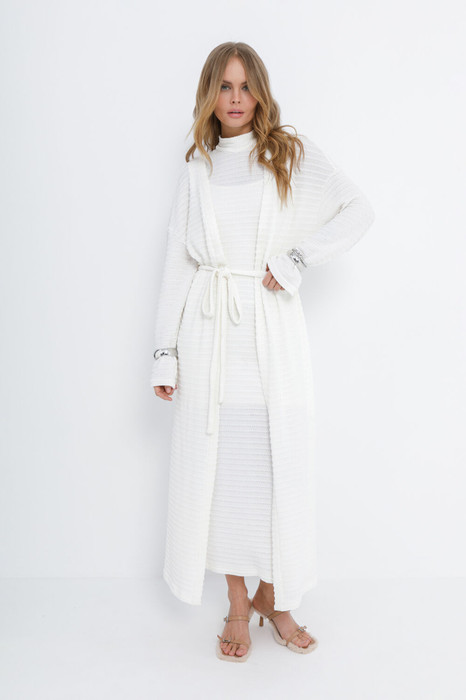 Длина макси-платья от верхней плечевой точки около 126 см* . Длина мини-платья по боку около 60 в размерах 40-46 и около 64 см в размерах 48-52. Длина кардигана по спинке около 122 см*
