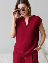 Костюм-двойка из прямого жилета и широких брюк со стрелками.