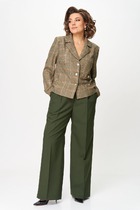 Трикотажный костюм-двойка из асимметричной туники и облегающих брюк-клеш.