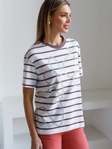 Свободная футболка в широкую полоску с принтом из премиального хлопка с эластано
