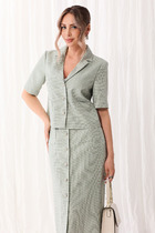 Элегантный комплект, состоящий из жилета и брюкпалаццо. Жилет полуприлегающего силуэта на х/б подкладке с воротником пиджачного типа с контрастной окантовкой. Центральная застежка на потайные кнопки. Перед с рельефами, переходящими в разрезы в нижней части жилета. Струящиеся брюки-палаццо свободного силуэта с расклешением от бедра, на притачном поясе, с застёжкой на потайную молнию в боковом шве. Брюки на частичной подкладке. В комплекте прилагается акцентный пояс на резинке с застежкой на кнопки.