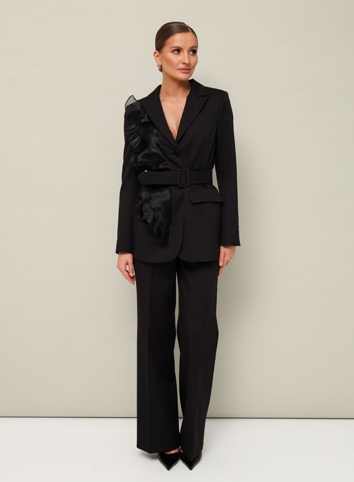 Комплект 2-предметный, состоящий из жакета и брюк, выполненный из костюмной ткани.