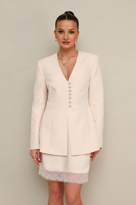 2-х предметный жакет, состоящий из жакета и юбки, выполненный из костюмной ткани.