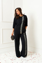 Брюки – длинные, с эластичной тесьмой по талии и низу и с карманами в боковых швах.