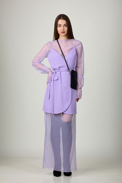 Комплект женский, состоящий из верхнего платья из плательно-костюмной ткани на подкладке и нижнего платья из прозрачной вуали.