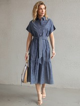 Платье в полоску А-силуэта с поясом из легкого хлопкового поплина