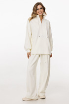 Брюки прямого кроя на притачном поясе с эластичной тесьмой. На передних половинках карманы.