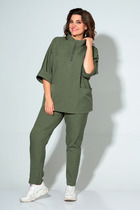 Комплект женский состоящий из блузки и брюк обязательно должен понравиться настоящим модницам. В данном комплекте Вы будете неотразимы. Блузка прямого силуэта. Брюки прямого кроя из ткани - масло. Тянется. Длина брюк: 106 см. Длина рукава: 40 см. Длина блузки: 86 см.