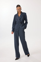 Брюки прямые с карманами в боковых швах. По низу небольшой разрез. Пояс притачной с резинкой(по центру гладкий)По бокам брюк и по центру рукавов втачные отделочные лампасы с контрастным кантом.