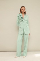 Брюки прямые. По переду карманы и мягкие складки. Пояс притачной, на резинке, с гладкой центральной частью. Костюм- трикотажное полотно 2х нитка .