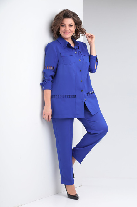 Женский брючный комплект-двойка. Выполнен из стрейчевой плательно-костюмной ткани «барби». Свободный, элегантный крой и яркие цвета придают костюму выразительность и универсальность.