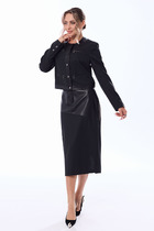 Средняя длина юбки по среднему шву заднего полотнища с поясом 76,0 см. (±2,0 см); Блузка: костюмно-плательная.