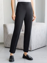 Брюки женские прямые от бедра, в размерах 42,44,46,48 на обтачном поясе, в размерах 50,52,54,56 с притачным поясом, с резинками на уровне боковых швов. По поясам с 5-ю шлевками, с застежкой на тесьму - «молнию», расположенную в среднем шве передних половинок. Пояс застегивается спереди на 1 пришивной потайной крючок, 1 петлю и 1 потайную пуговицу (размер и цвет фурнитуры может незначительно отличаться от фото). Передние половинки брюк с боковыми наклонными карманами. Задние половинки брюк с талиевыми вытачками, идущих от пояса вниз. Брюки с заутюженными стрелками по передним и задним половинкам. Средняя длина жакета по среднему шву спинки - 66,5 см (±2,0 см);
