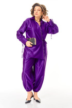 Костюм, состоящий из шорт с прорезными карманами в боковых швах и майки на бретельках с отрезным лифом. На майке с левой стороны внизу расположена печатьТкань: кулирка