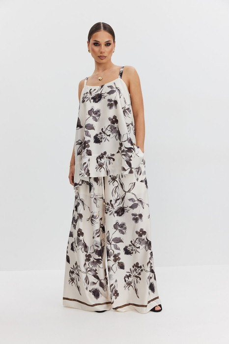 48 р-р: блузка: ОГ - 108 см., ОБ - 108 см.; брюки: ОТ - 82 см., ОБ - 114 см.