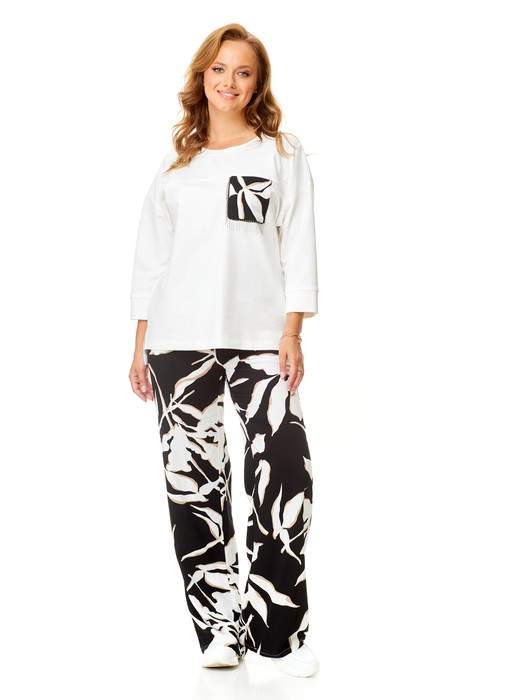 Состав: Джемпер- Вискоза-24%; Хлопок-70%; Эластан-6%; Брюки- Вискоза-65%; Спандекс-5%; Хлопок-30%;